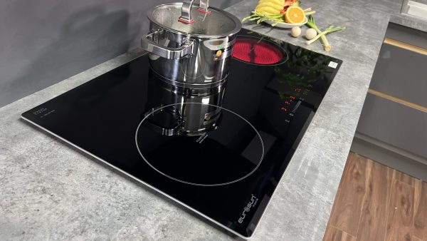 Bạn có thể tận dụng các loại xoong, nồi vì bếp điện không kén nồi, phù hợp với nhiều kích cỡ. Ưu điểm của bếp điện hơn hẳn các sản phẩm khác là có thể nướng trực tiếp lên bề mặt. Nướng thịt, rau củ, hải sản thơm ngon. Bạn nên vệ sinh sạch sẽ mặt bếp sau khi sử dụng. Hoạt động của bếp điện là truyền nhiệt lên mặt kính rồi mới lên đáy nồi nên mặt kính bếp rất nóng. Sau khi nấu, bạn có thể tận dụng hâm nóng thức ăn trên bếp. Ngược lại với vùng điện, bếp từ chỉ hơi nóng vùng nấu. Hiệu suất nấu lên tới 90%. Chức năng nhận diện vùng nấu chỉ sinh nhiệt vùng đáy nồi, tránh nồi thất thoát nhiệt ra ngoài. Chức năng Booster ở vùng từ nấu siêu nhanh kích hoạt công suất MAX 3000W, tuy nhiên thời gian tối đa mặc định dùng chức năng này là 10 phút/lần tránh quá tải.