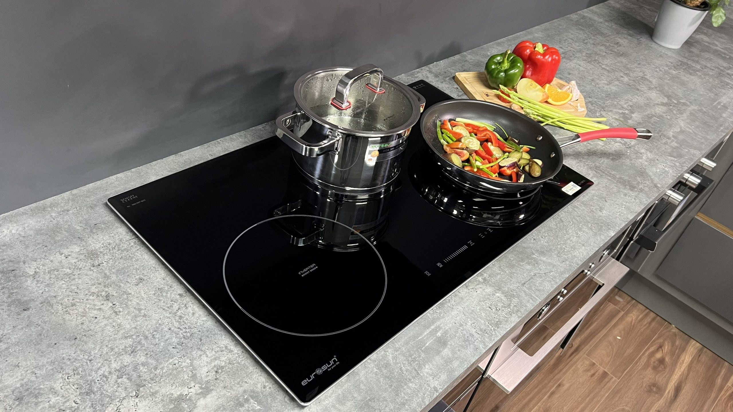 Bảng mạch điều khiển của sản phẩm tôi đang giới thiệu với bạn hôm nay sử dụng loại bảng điều khiển EGO Controls Flex Touch (EGO Flex TC) với đặc trưng điều khiển là chọn vùng nấu sau đó kéo trượt dải Slider Control để điều chỉnh công suất. Với lại bảng mạch này có khả năng chịu được đến 105 độ C và chỉ tiêu thụ có chưa đầy 0,5W/h rất tiết kiệm điện. Đồng thời nó cũng được lập trình nhiều tính năng nấu thông minh, nấu cơm… tương lai Eurosun có thể sẽ có những bản nâng cấp khác.